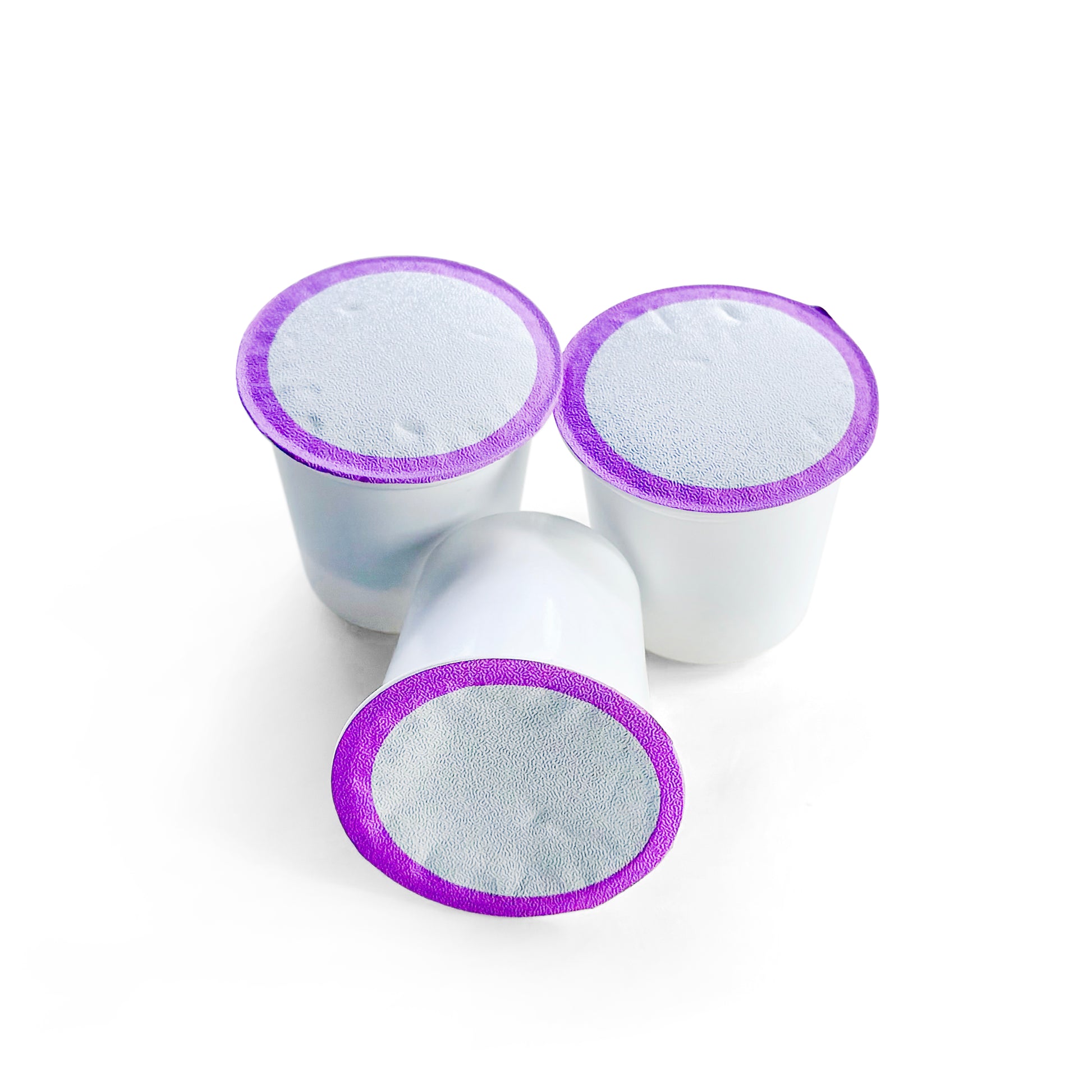 Capsules are the standard "cup" with a foil top. Designed for use in most single cup brewers.